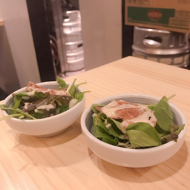 サラダといえばレタスやキャベツが出されるのが多い中、このサラダはベビーリーフ。
