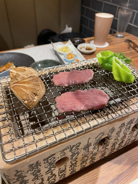 小さな七輪を使い、備長炭で焼き上げる肉は最高!