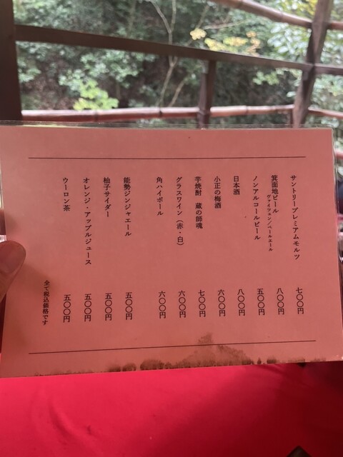 飲み物を聞かれたので母とハンドルキーパーの私はノンアルコールビール(500円)、お連れさんは能勢ジンジャー(500円)を注文。