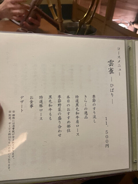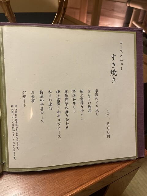 今回注文したのは「すき焼き(17,500円)」。