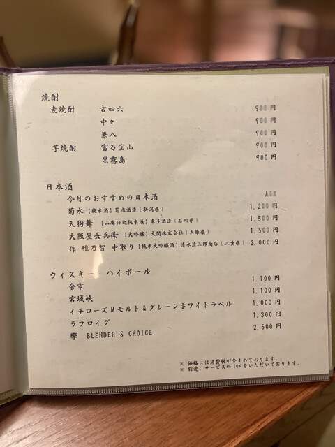 居酒屋のような勢いのあるものと違って落ち着いた雰囲気、さすがは高級店。
