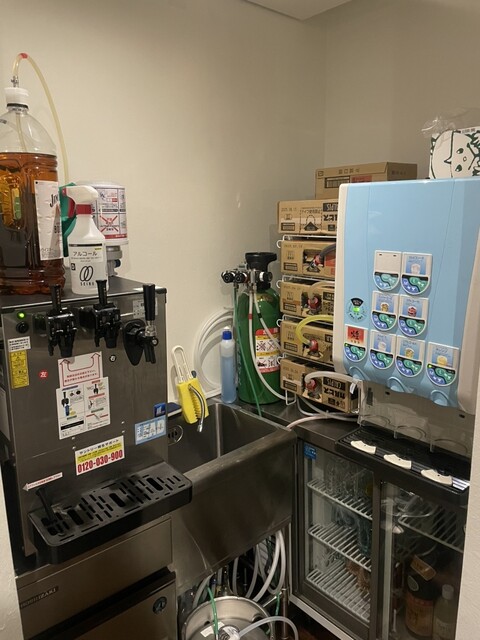 QRコードを読み込んでネットで注文すればスタッフの方がお酒を持ってきてくれますが、2階にもサーバーが置かれているので自分でお酒を注ぐこともできますし、レモンチューハイに至っては自分で濃さを調節することができます。
