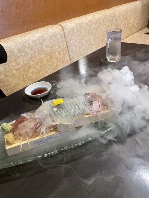 ドライアイスに水をかけて映えるようにしてくれるサービスも。