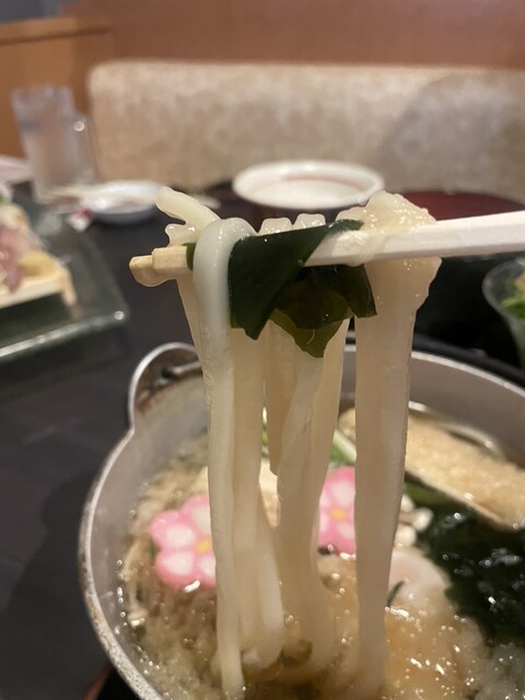 まず、うどんは手打ちで適度なコシとツルツル感。出汁もきっちり関西風。具材はネギとえのき、揚げにわかめ、玉子と蒲鉾。揚げ玉が入っていて具沢山。
