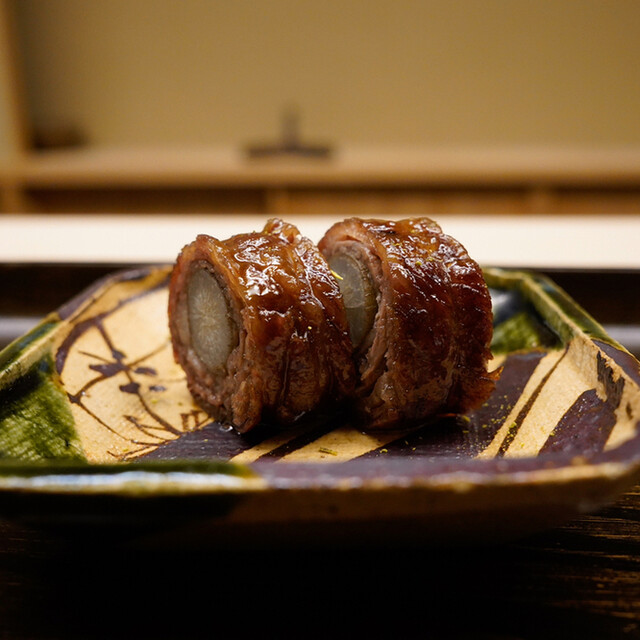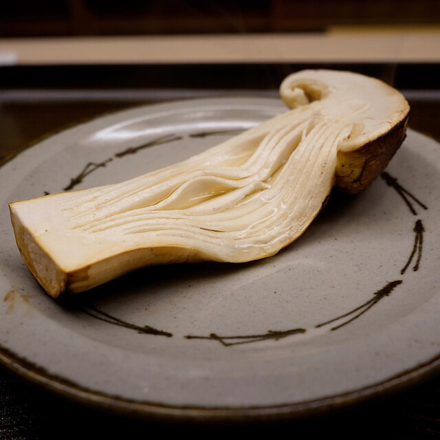 切り口を見ただけで、普段東京で食べる物との差が歴然とわかる松茸。炭火焼きを口に入れると瑞々しいスープが口の中いっぱいに広がるのはもちろん、その食感と歯切れの良さは全く新しい体験でした。