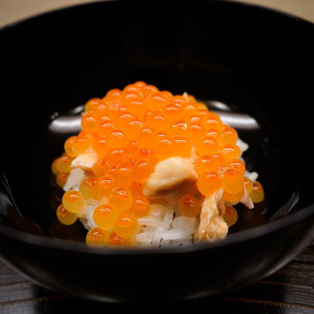 お椀は宇出津の毛ガニを寄せたもの。お出汁とのバランスが最高です。