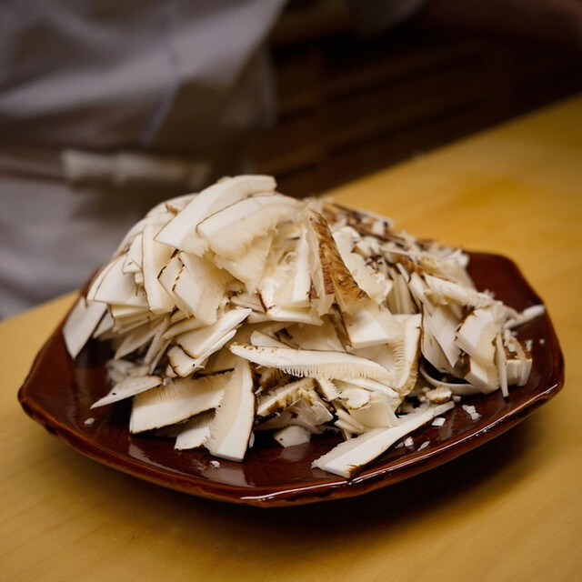 能登で朝とれた松茸をそのまま夜の食事で食べられる。この季節の『片折』さんだからこそできる機会を楽しみに金沢までやってきました。ところが、気象条件の影響で今年は松茸が大不作。能登も例外ではなくほとんど取れていなかったかったそうですが、食の神様がまたも助けてくださいました。