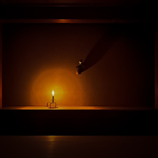 この日の『片折』さんは、夜咄の茶事にちなんだ設え。和蠟燭ならではの幻想的な灯りで席に案内されました。
