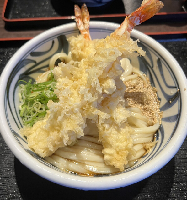 海老の天ぷらが大きいので、これから頬張る。プリプリで美味い。うどんもいつも通り、絶妙なコシがあってたまらなく美味い。これは永遠に食べていられるのでないかと思うくらい好きなうどんだw