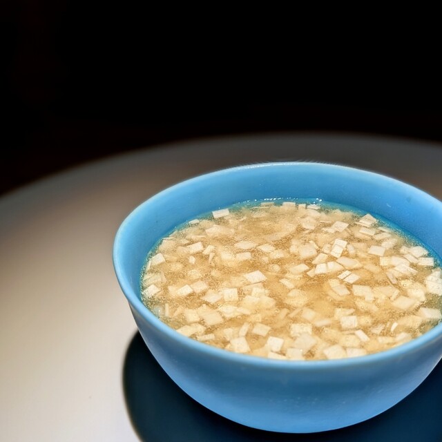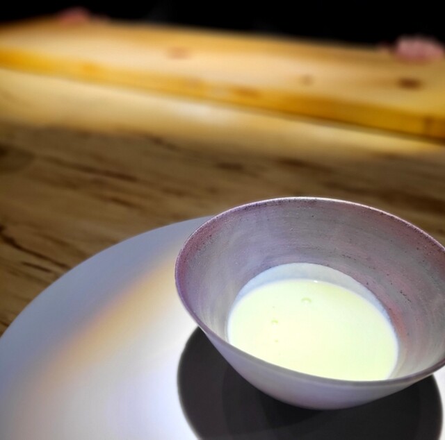 ホワイトアスパラ本来の苦味がスープに感じられ唸る。