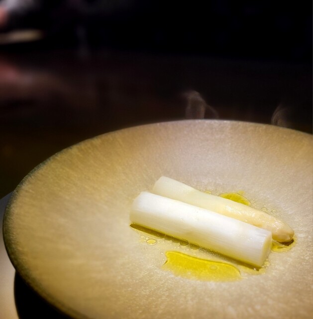 ホワイトアスパラをホワイトアスパラから抽出した水分で茹でるという頭がイカれたお料理。