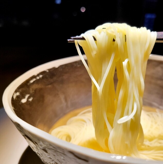 カッペリーニとえのきが同時に口に入ることで食感のコントラストが非常に楽しい。