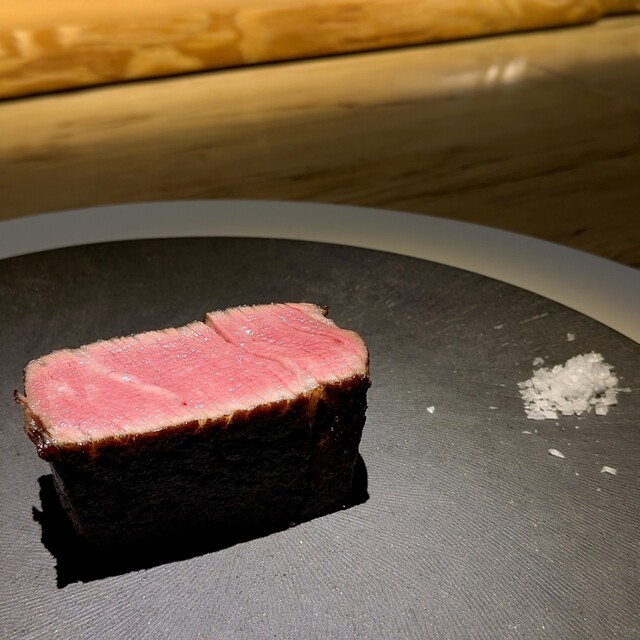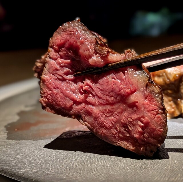 表面がビーフジャーキーの様にカリカリで最高のステーキ。