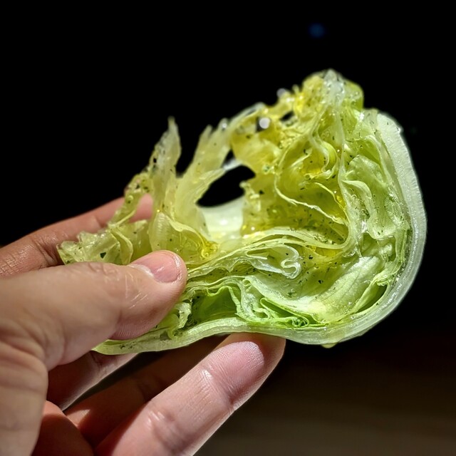 レタスを分解してドレッシングのゼリーを塗って再構築。