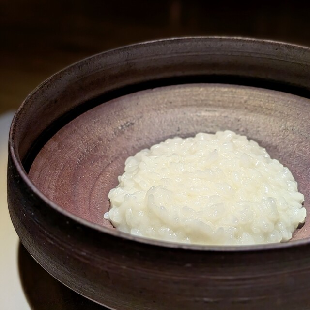 米と塩と水で食感、旨みを引き出し、米の豊かな香りが鼻腔を刺激する。