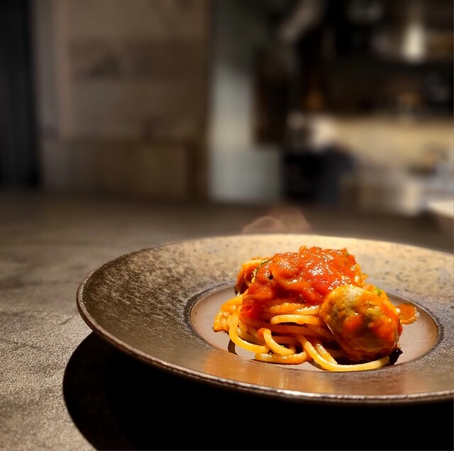 温度感が素晴らしく歯切れの良いパスタの食感が楽しい。