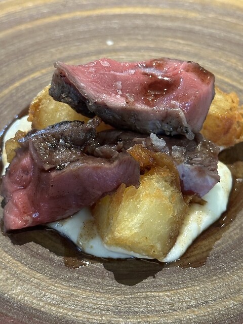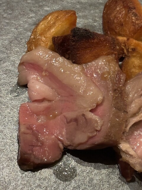 ・信州新町のサフォーク (トモサンカクと肩ロースにあたる2種の部位) ・スペインの乳飲みの仔羊(=コルデロ・レチャル) ・フライドポテト