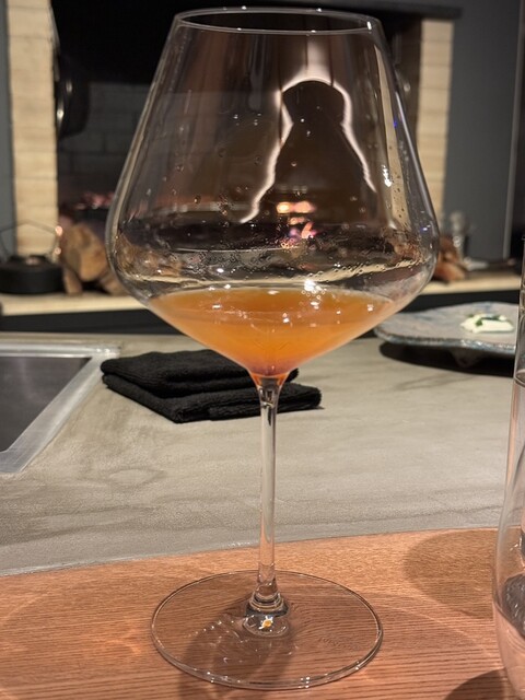 ドリンク②(グラスの写真失念) ・麹と水と米で作った甘酒に、麹だけで作った甘酒の上澄を加えて冷蔵熟成させたもの。その上澄みに ・カヴァビネガーを少し