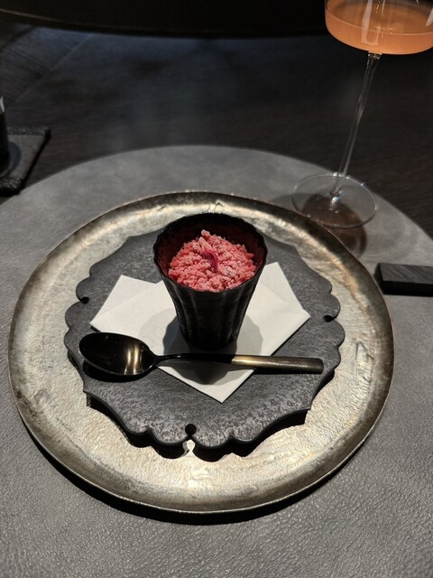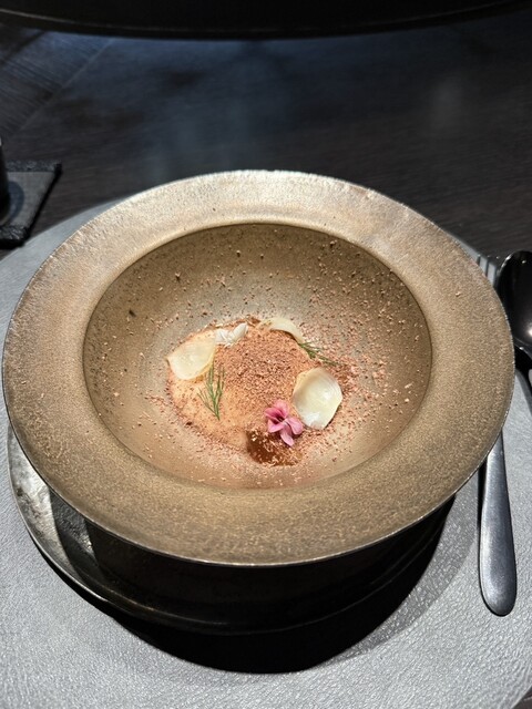 田中シェフが仰っていた雨の次の日の曇りのような空気感を感じるデザートでした。色気むんむんです。