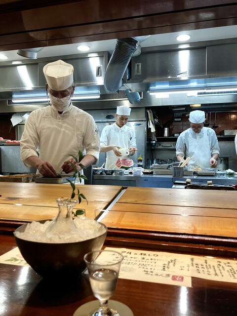 開放的なカウンターでは目の前で料理人達による仕込み作業が見られて良いポジショニング。
