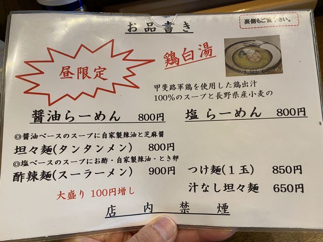 塩らーめんは、甲斐路軍鶏を使用した、