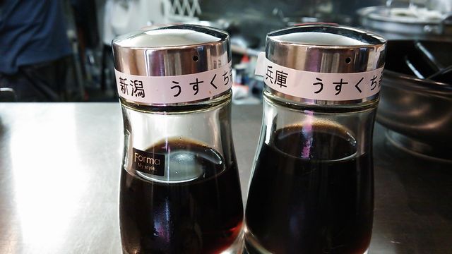 新潟・兵庫のうすくち醤油をお好みでかけて頂きます。