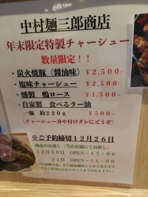 年末限定特製チャーシュー予約しました