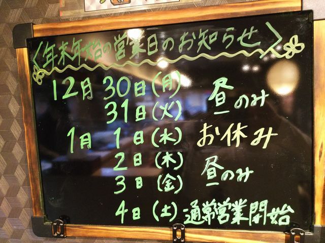 年末年始の営業日のお知らせ