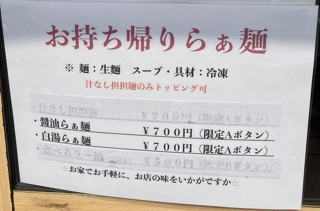 今回は、白湯らぁ麺をお持ち帰り。