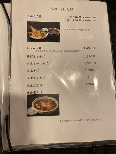 温かいお蕎麦メニュー