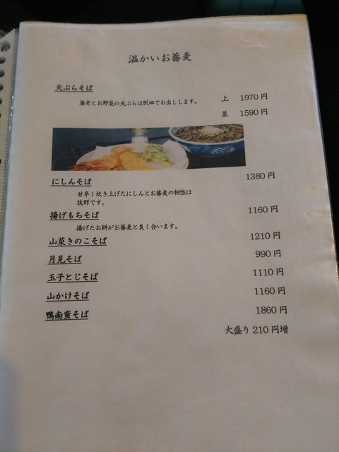 温かいおそばメニュー