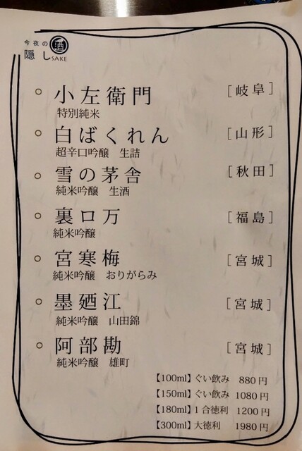 おまかせコース(4.800円)にお酒をあれこれ