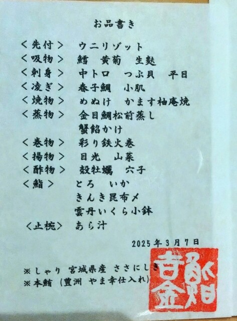 前日予約で親方おまかせコースにお酒を幾つかいただきました。