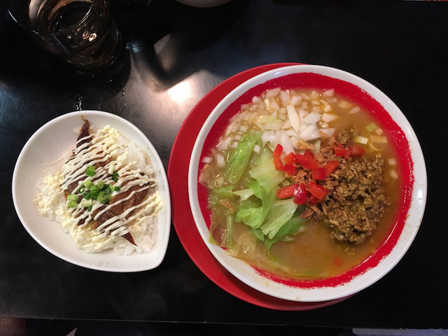 Bランチ(フラインドオニオンが香ばしい味噌カレーラーメンとミニ豚マヨ飯) 799円