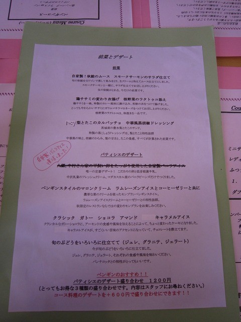 Xmasメニューは前菜、パスタ、ハンバーグ、ドリンク