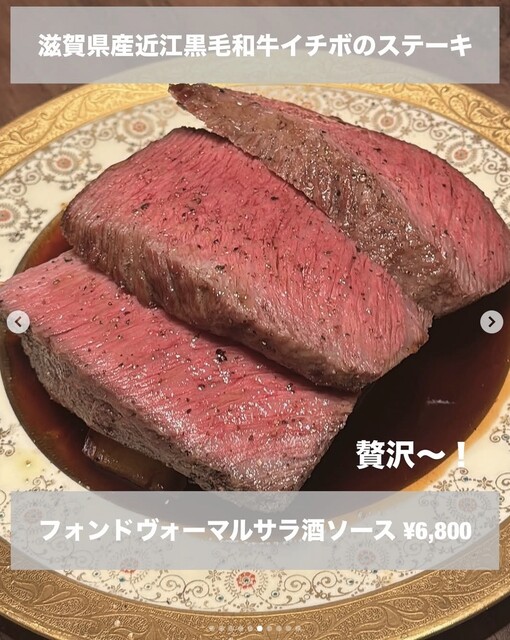 ・滋賀県産近江黒毛和牛イチボのステーキ ファンドヴォーとマルサラ酒のソース ¥6,800