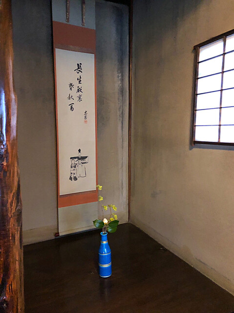 ✽ 二畳台目の軸は署名から見て司馬遼太郎のものと思われる。この仄暗さがいい。