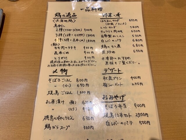 メニューを拝見。日本酒の種類も多く、見たことない酒が半分以上。ドリンクは最高です。お料理のメニューは普通の焼き鳥屋さんと相違ない。基本は大山鶏、淡海地鶏は希望を出すと、メニューを持ってきていただけます。