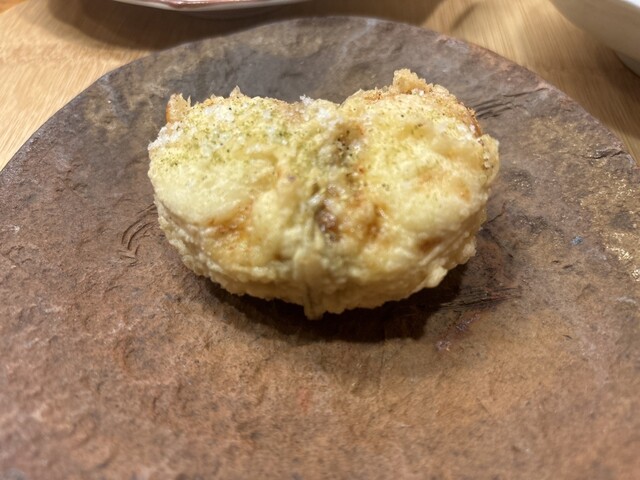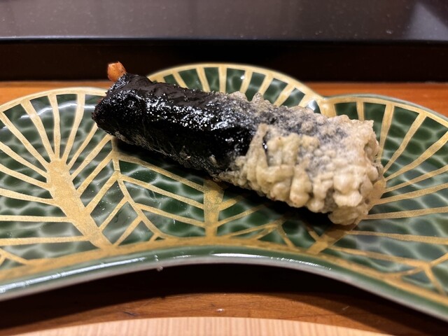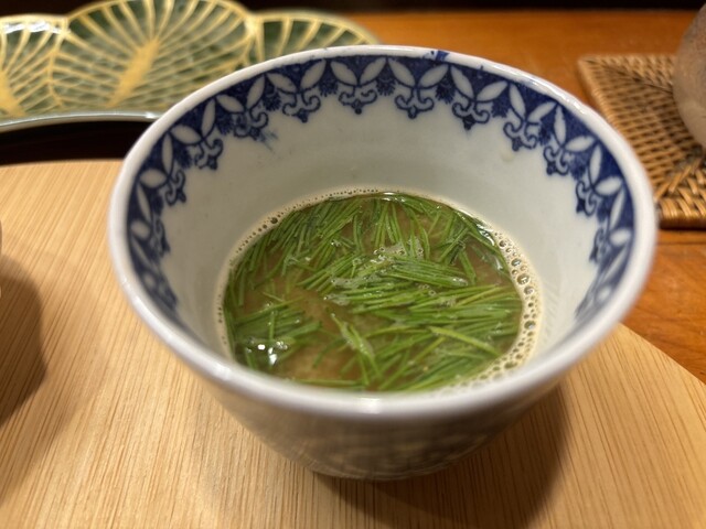 最初はフグの炙り。元々は先代が、フグ料理屋さんだったらしい。まず鼻腔を突き抜けるは紫蘇の花の香。見た目の良さもプラス。口に入れて感じるはフグの弾力。炙りフグも良い。そして後に引くは濃厚なからすみ。初っ端から完成度の高い一品を出してくる。