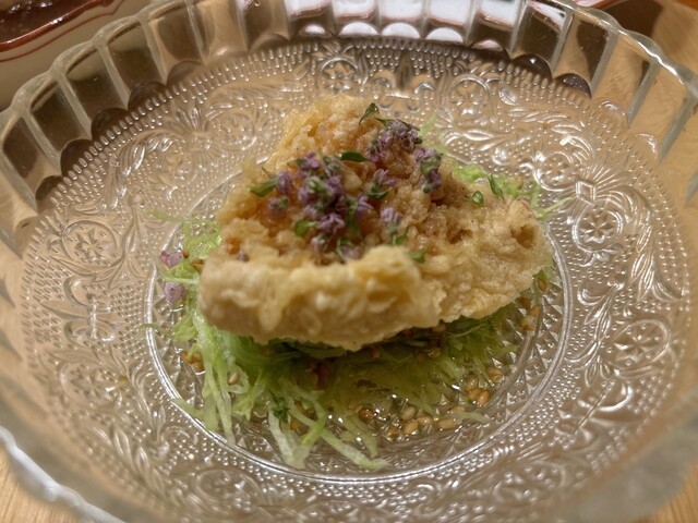 塩で。革命。衣が口の中で溶ける。立派な衣に包まれているはずなのに、衣感が無い。もちろん非常に良い意味で。でもちゃんと揚げ物。えびは新鮮。先程まで元気に跳ねていたもの。身が上質。プリップリの歯応え。圧倒的過去一の天ぷら更新。もう1匹、好きな食べ方で。