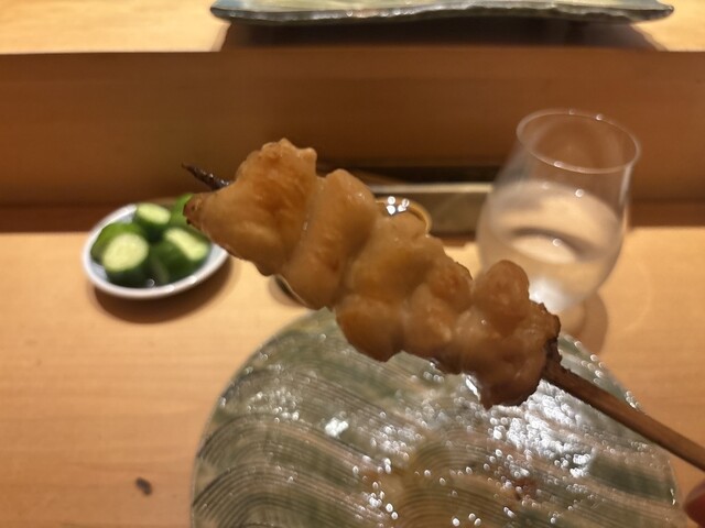 超コリコリ。でかい。コリコリ食感を噛み締めながら、つなぎの肉の旨み、程よい塩、強く感じる炭火焼き感が当串の完成度を高めている。
