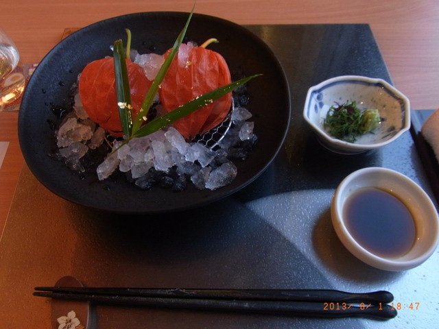夏懐石には、ほうずきやナス、ジュレなどで”涼”を表現。