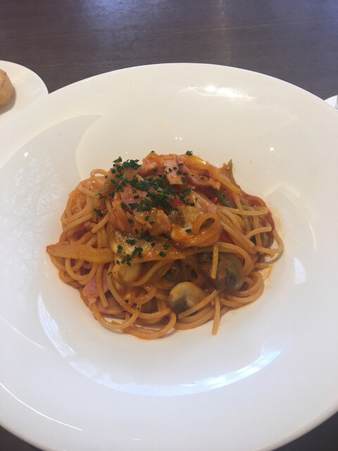 トマトソースが甘くマッシュルームや玉葱など、オーソドックスなナポリタンで美味しかったです。