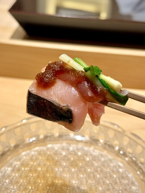 ネタとシャリの間に紫蘇の実を忍ばせた
