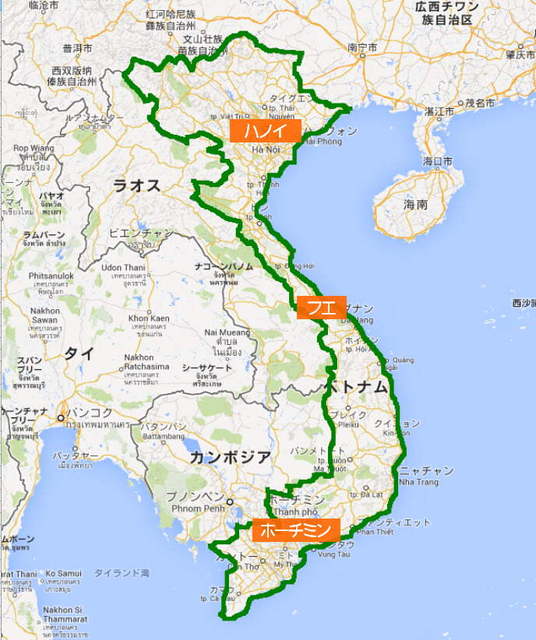 ベトナム地図。食文化は北部・中部・南部に大別される