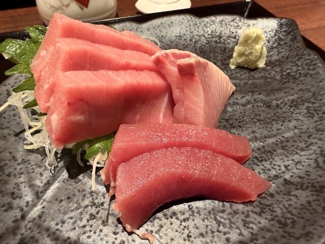ここで刺身3種盛りが到着。お造りもしっかり、美味しいです。日本酒や焼酎がよく合うなぁ。