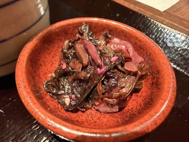 乾杯したら、柚子味噌大根をつつきながら、少し談笑。ほぼ同時にもずくも到着。口の中をさっぱりとしてくれます。