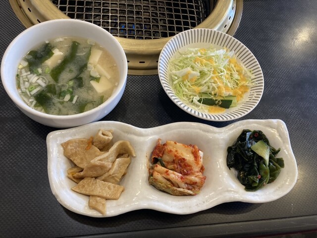 ご飯、味噌汁、サラダ、肉・・・その他もろもろついてる。