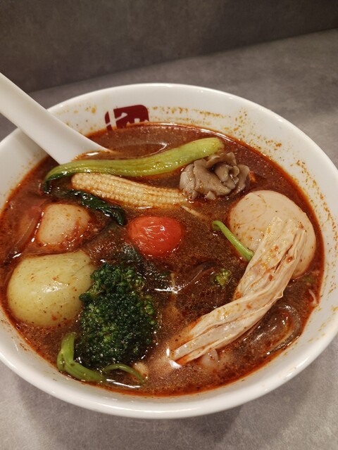 1辛、太麺の麻辣湯。野菜もタップリとれてヘルシーです。