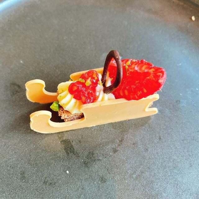 ピスタチオのムース・カシスのコンフィチュール